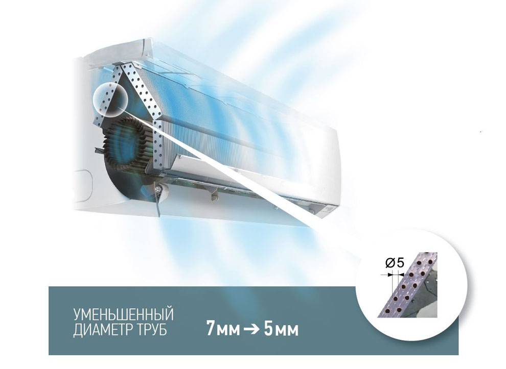 В отличие от предыдущего поколения новые настенные внутренние блоки (за исключением моделей ASYA18,24GBCH) оснащены 6-скоростным вентилятором. Встроенный стабилизатор воздушного потока, уравнивающий скорость и объем циркулирующего воздуха, позволил существенно снизить уровень шума.