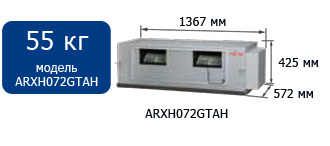 Конструкция новых агрегатов аналогична обычным высоконапорным канальным внутренним блокам. В 2014 году будут доступны три модели холодопроизводительностью 14, 22 и 28 кВт: ARXH054GTAH, ARXH072GTAH, ARXH096GTAH.
