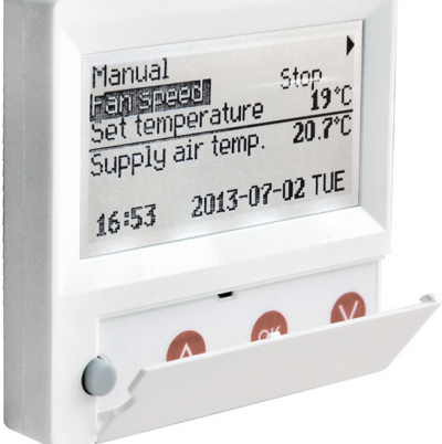 Пульт позволяет настраивать скорость притока и вытяжки воздуха, увеличивает приток свежего воздуха и управляет его температурой.
