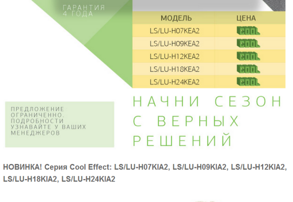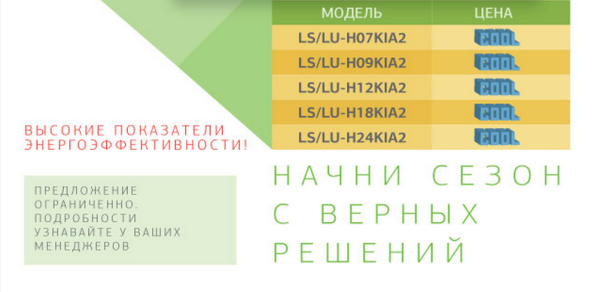 Торговая марка LESSAR к началу сезона подготовила для вас уникальное предложение - выгодные цены на следующие модели бытовых сплит-систем.