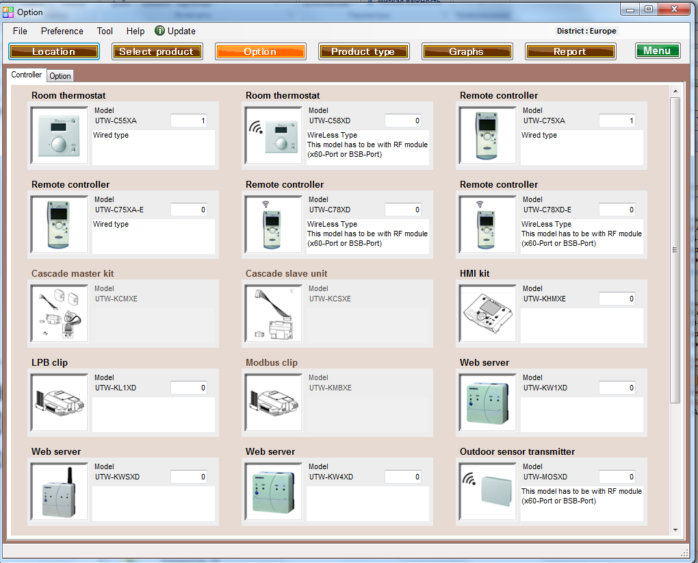 Прежде всего, необходимо указать регион установки оборудования (выбрать страну и город), задать величину требуемой производительности, а также желаемый тип и серию тепловых насосов. Далее программа осуществит автоматический подбор всех возможных вариантов оборудования.