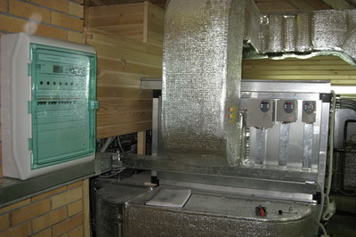 Двухэтажный коттедж общей площадью около 280 м². Вентиляционная установка обслуживает полностью все здание. Расход воздуха по характеристикам приток / вытяжка составляет 3730 / 3500 м³/ч.