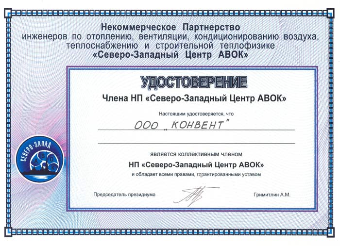 Удостоверение члена АВОК