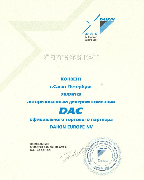 Дилерский сертификат Daikin