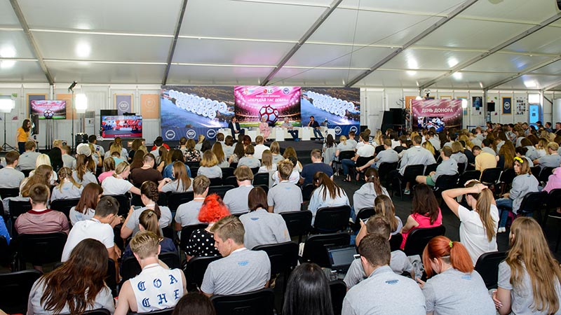LG Electronics поддерживает третий год Всероссийский молодежный образовательный форум «Территория смыслов на Клязьме». 25 июля на 4-й смене форума «Молодые руководители НКО, правозащитных и добровольческих проектов» в условиях мобильного комплекса заготовки крови (МКЗК) Центра крови ФМБА России состоялся юбилейный, 85-й для LG футбольный День донора, организованный Министерством здравоохранения Российской Федерации и Федеральным медико-биологическим агентством. В преддверии важных спортивных событий в России в 2017-2018 г., послами добрых дел LG стали известный футболист Антон Шунин, капитан и вратарь ФК «Динамо», и легенда российского футбола Евгений Ловчев. Накануне вечером Антон, Евгений, и г-н Иль Хван Ли, Президент LG Electronics, в России и странах СНГ, обратились с приветствием к участникам форума с главной сцены и напутствовали ребят на добрые дела. На следующий день послы добрых дел LG вместе с Русланом Нигматуллиным, трехкратным чемпионом России по футболу и дважды лучшим вратарем, и Татьяной Шахнес, PR директором LG Electronics в России, провели совместный мастер-класс «Добро через поколения» для участников Форума.