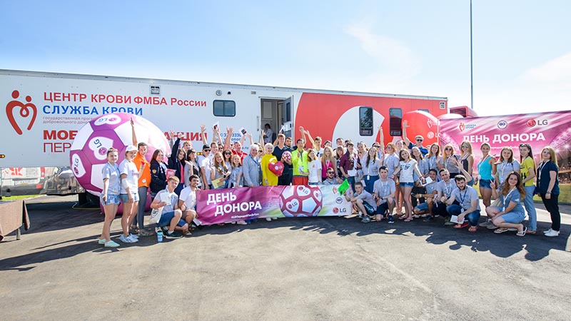 Став в 2009 году первым из бизнес-сообщества партнером Минздрава России и ФМБА России, компания LG реализует проект «Корпоративное волонтерство. Содействие донорскому движению во имя здоровья нации» в поддержку Программы развития массового добровольного донорства крови и ее компонентов на территории России. За 8 лет проект LG достиг впечатляющих результатов по привлечению доноров, компаний-партнеров и освещению проблематики донорства в СМИ, а также вовлечению в донорское движение молодых людей. Всего было проведено 85 Дней донора в 27 городах России. Более 8 300 человек стали донорами – они помогли более 16 600 пациентам. Более 50 известных российских спортсменов поддержали социальную инициативу компании и стали послами добрых дел LG: известные футболисты Денис Глушаков, Артем Ребров, Роман Широков, Сергей Овчинников, Вячеслав Малафеев, Руслан Нигматуллин, Олимпийские чемпионы Алексей Немов, Татьяна Навка, Александр Зубков, Алексей Воевода, Александр Легков и многие другие.