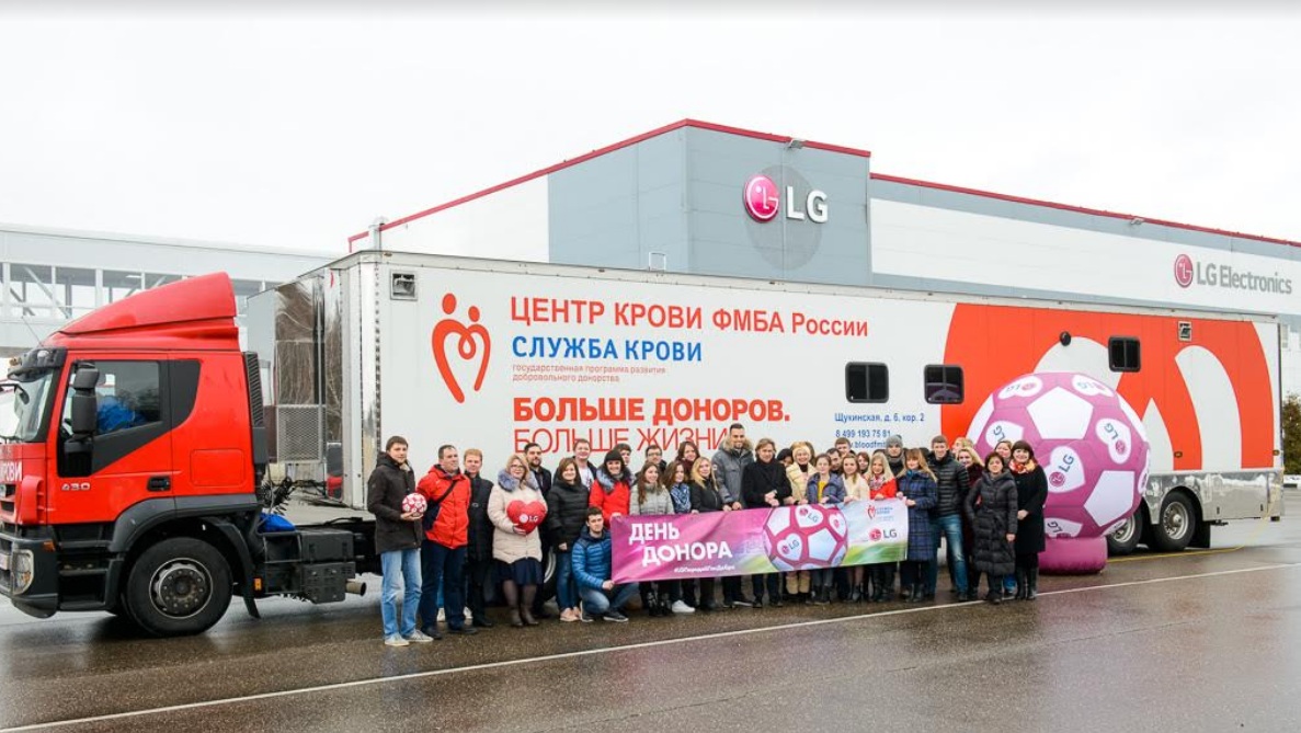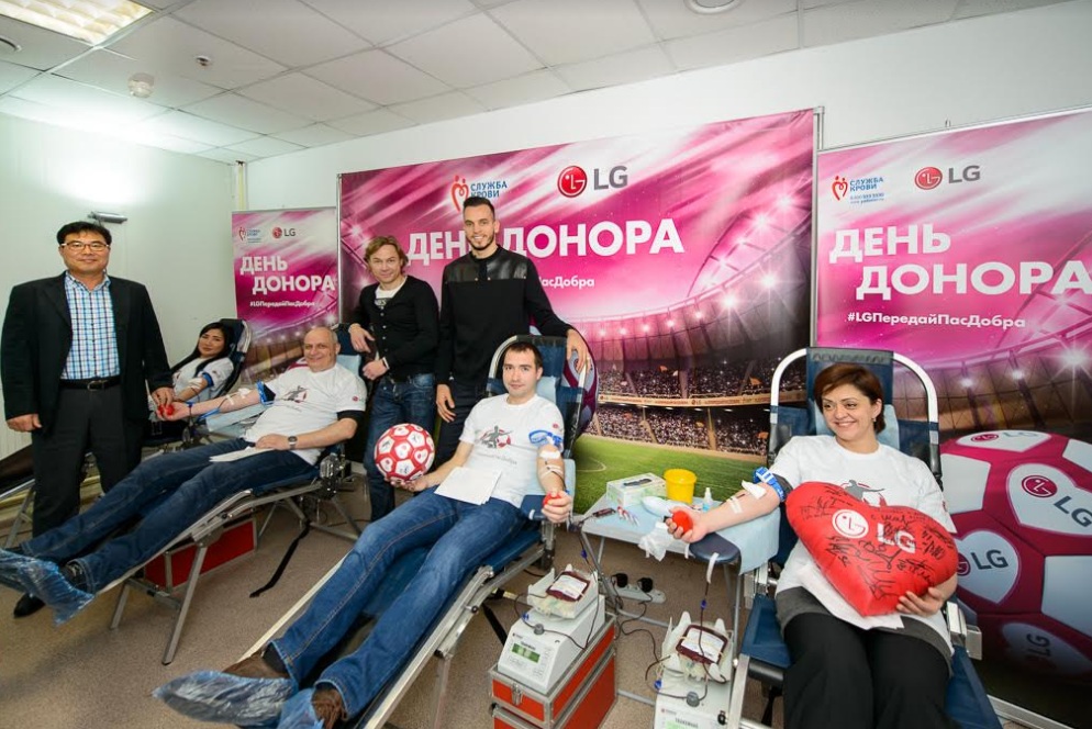 Став в 2009 году первым из бизнес-сообщества партнером Минздрава России и ФМБА России, компания LG реализует проект «Корпоративное волонтерство. Содействие донорскому движению во имя здоровья нации» в поддержку Программы развития массового добровольного донорства крови и ее компонентов на территории России. За 9 лет проект LG достиг впечатляющих результатов по привлечению доноров, компаний-партнеров и освещению проблематики донорства в СМИ, а также вовлечению в донорское движение молодых людей. Всего было проведено 88 Дней донора в 28 городах России, а также в Казахстане, Белоруссии, Молдавии, в которых приняло участие более 8 300 человек. Свыше 55 известных российских спортсменов поддержали социальную инициативу компании и стали послами добрых дел LG: известные футболисты Валерий Карпин, Денис Глушаков, Артем Ребров, Евгений Ловчев, Роман Широков, Сергей Овчинников, Вячеслав Малафеев, Антон Шунин, Руслан Нигматуллин, Олимпийские чемпионы Алексей Немов, Татьяна Навка, Александр Зубков, Алексей Воевода, Александр Легков и многие другие.