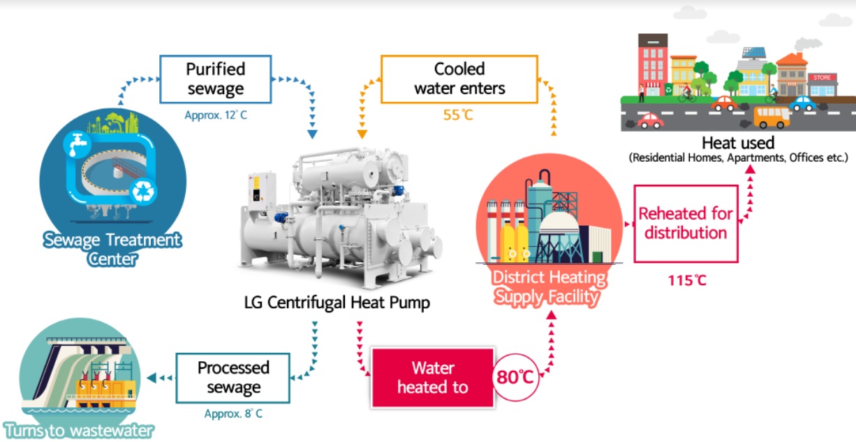 В свою очередь, высокоэффективный и экологически безопасный центробежный тепловой насос от LG Electronics поддерживает растущий интерес к рекуперации отработанного топлива.