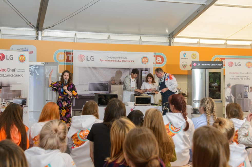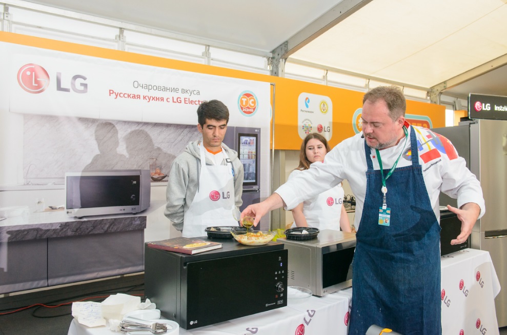 Образовательная программа от LG стартовала с реалити-шоу – кулинарного мастер-класса «Очарование вкуса: русская кухня с LG Electronics» с участием Влада Пискунова, шеф-повара ресторана «Матрешка», признанного эксперта русской кухни. Он продемонстрировал как легко и быстро в домашних условиях при помощи микроволновой печи LG NeoChef приготовить исконно русские рецепты и красиво их сервировать: треску по-поморски, калитки и цыпленка с драгун травой.