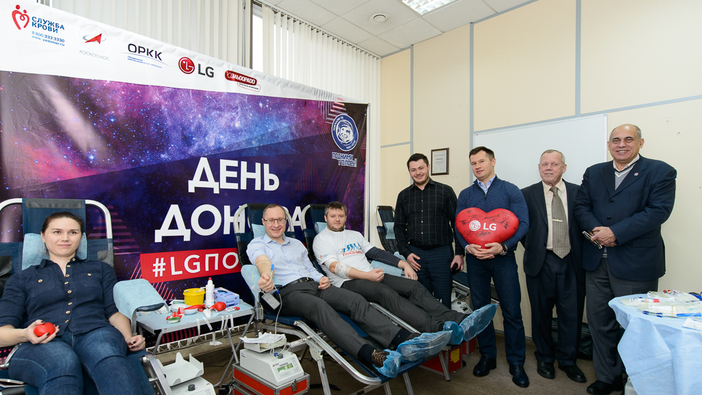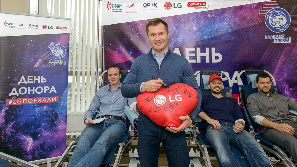 В 2016 году исполнилось 55 лет с момента полета Ю. А. Гагарина в космос. В рамках партнерства с Роскосмосом и ОРКК в области добрых дел компания LG продолжает «космические» донорские инициативы. В дне донора, проводимом совместно с давним партнером в области бизнеса и социальных инициатив компанией «Эльдорадо», приняло участие руководство Федерации космонавтики России – первый вице-президент и генеральный директор Василий Кузнецов и вице-президент Вячеслав Барденков. «Мы очень рады поддержать сегодняшний космический День донора. Практический каждый день происходят маленькие трагедии и десятки, а то и сотни пациентов нуждаются в переливании крови. Поэтому наша задача, миссия здоровых людей, помогать своим согражданам. Ведь только общими усилиями мы сможем достичь реально значительных результатов», - отметили представители Федерации космонавтики России.