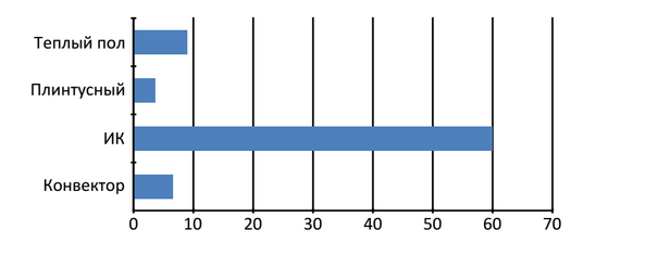 В результате исследования наилучшие показатели, с точки зрения, комфортности использования, наилучшими оказались тёплые полы и обогреватели плинтусного типа.
