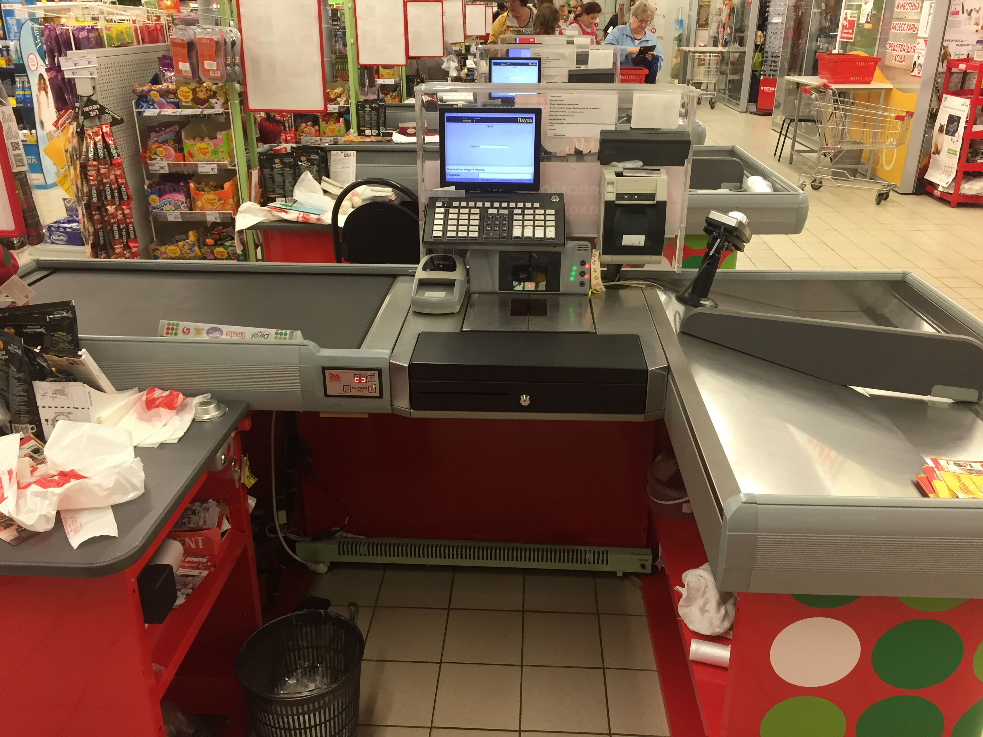 Системы обогревателей размещены в торговом зале, в кассовой зоне и в подсобных помещениях (9 помещений). По желанию заказчика обогреватели были выкрашены в корпоративный зеленый цвет.