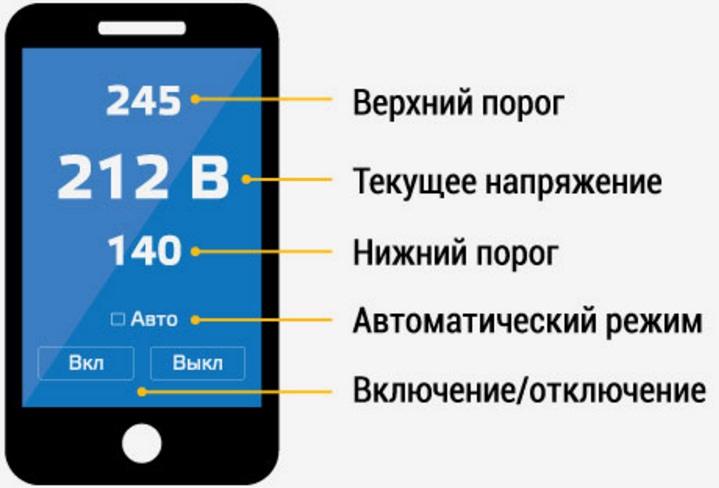 Андроид-приложение позволяет контролировать состояние розетки и управлять порогами напряжения.