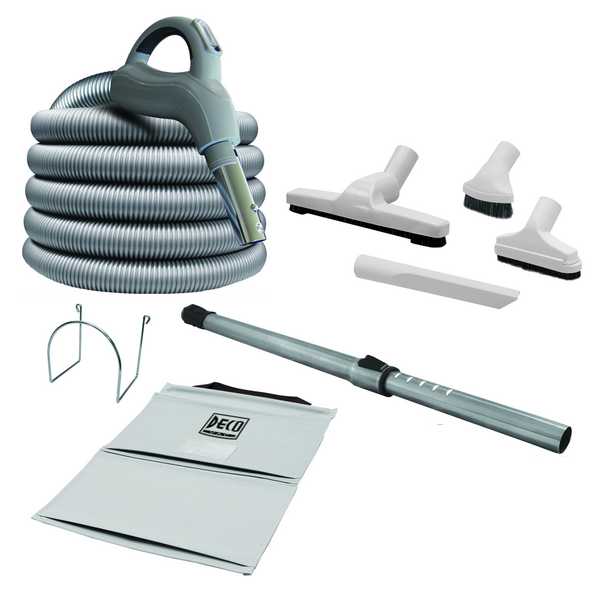 В комплект включено: уборочный шланг Турбогрип 9м, раздвижная металлическая телескопическая трубка, набор насадок: насадка со щетиной 30 см, щелевая насадка, насадка для малых поверхностей, насадка для ткани; сумка для насадок; держатель для шланга.
