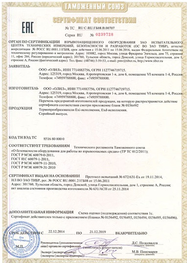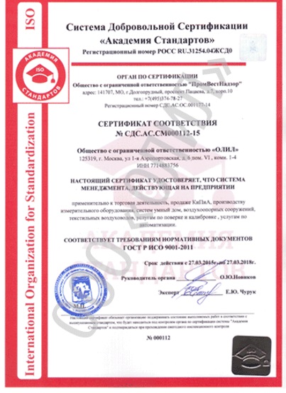 Компании вручен сертификат соответствия на продукцию ОЛИЛ ТЕРМОКомпания ОЛИЛ получила сертификат соответствия на термопреобразователи ОЛИЛ ТЕРМО.
