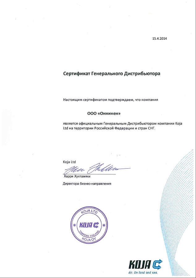 Лицензии и сертификаты компании Onninen (Оннинен)