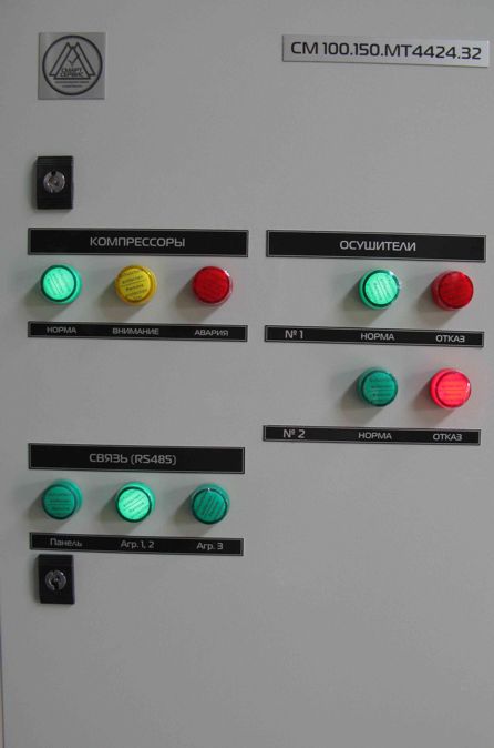 Система управления на базе оборудования ОВЕН позволяет в автоматическом режиме отслеживать оперативные параметры работы компрессорного агрегата, а именно: режим работы, температуру в нагнетании и резервуаре, давление в нагнетании и резервуаре). Система также выдает сообщения о необходимости замены расходных материалов и проведении технического обслуживания и осуществляет запись о последних аварийных остановах с указанием отметки наработки агрегата на момент останова и причины. Для отображения информации о состоянии системы, полученной о т штатных контроллеров, в диспетчерской используется операторская панель, а в машинном зале для визуального анализа состояния системы используются световые индикаторы.