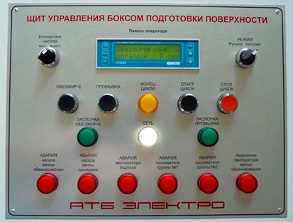 Щит управления бокса подготовки поверхности на базе ОВЕН ПЛК63 разработан компанией «АТБ Электро» (г. Санкт-Петербург).