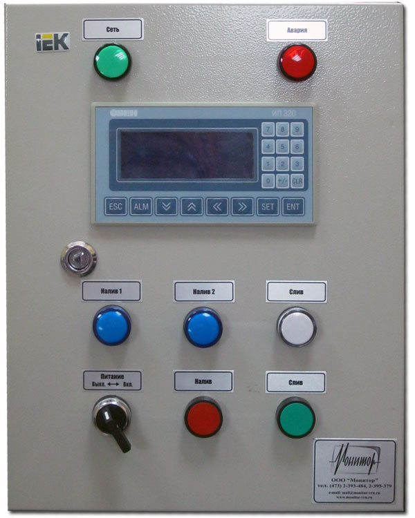 Шкаф управления дозатором жидких пищевых продуктов СВД разработан компанией «Монитор» (г. Воронеж) и построен на базе программируемого логического контроллера ОВЕН ПЛК100, панели оператора ОВЕН ИП320, модулей сбора данных с тензодатчиков ОВЕН МВ110-1ТД, блока питания ОВЕН БП15Б-Д2 и блока сетевых фильтров ОВЕН БСФ .
