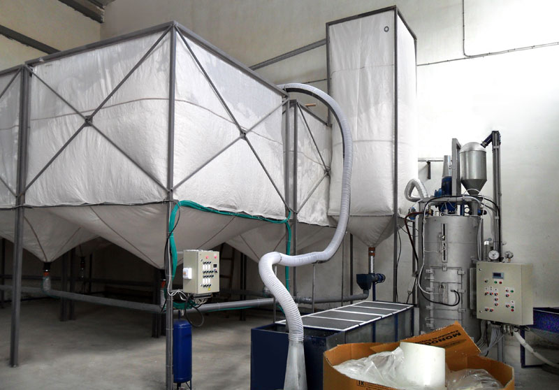 Автоматизация позволила облегчить труд оператора. Теперь ему достаточно нажать только кнопку «Пуск» и задать через панель оператора ИП320 необходимые параметры технологического процесса. Контроллер ПЛК150 полностью осуществляет управление и контроль процессом вспенивания. Загрузка сырья в весовой терминал осуществляется под контролем тензодатчика с преобразователем сигнала МВ110-224.1ТД, сигнал с которого также поступает на контроллер – и ПЛК150 в зависимости от сигнала с тензодатчика управляет скоростью вращения шнекового транспортера через частотный преобразователь ПЧВ101-К75-А, что позволяет достичь максимально точного веса сырья для предвспенивания.