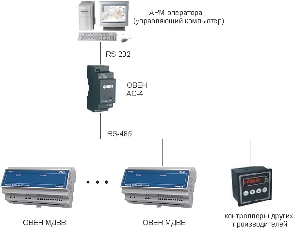 • Преобразователь интерфейсов АС-4 предназначен для объединения контроллеров в сеть RS-485, обмен данными между компьютером и контроллерами;