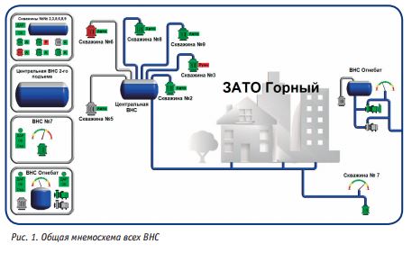 Для оптимизации затрат на обслуживание водонасосных станций, сокращения расходов на электроэнергию и заработную плату сотрудников была разработана система диспетчеризации объекта с функциями контроля состояния и дистанционного управления удаленными ВНС.