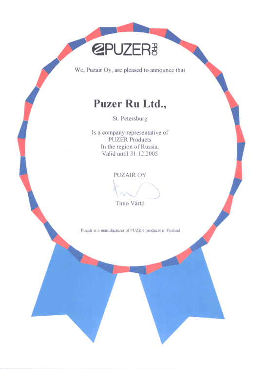 Сертификат Puzair Oy