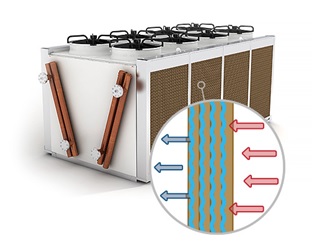 Компания ThermoKey представляет системы повышения эффективности теплообмена в драйкулерах и выносных конденсаторах. Принцип работы систем основан на охлаждении воздушного потока за счет адиабатического испарения, т.е. снижения температуры за счет повышения относительной влажности воздуха.