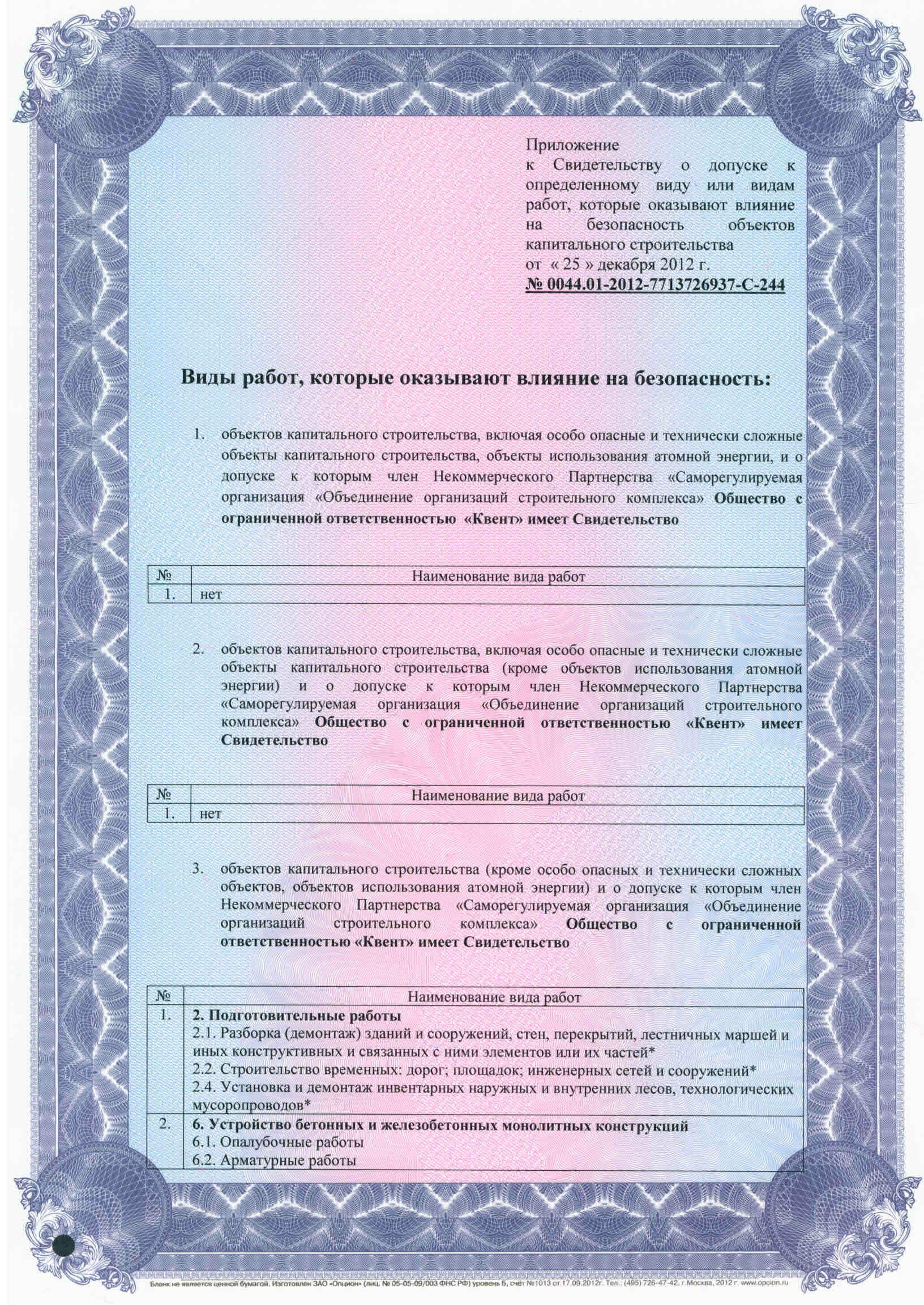 Приложение №2 к свидетельству СРО № 0044.01-2012-7713726937-С-244