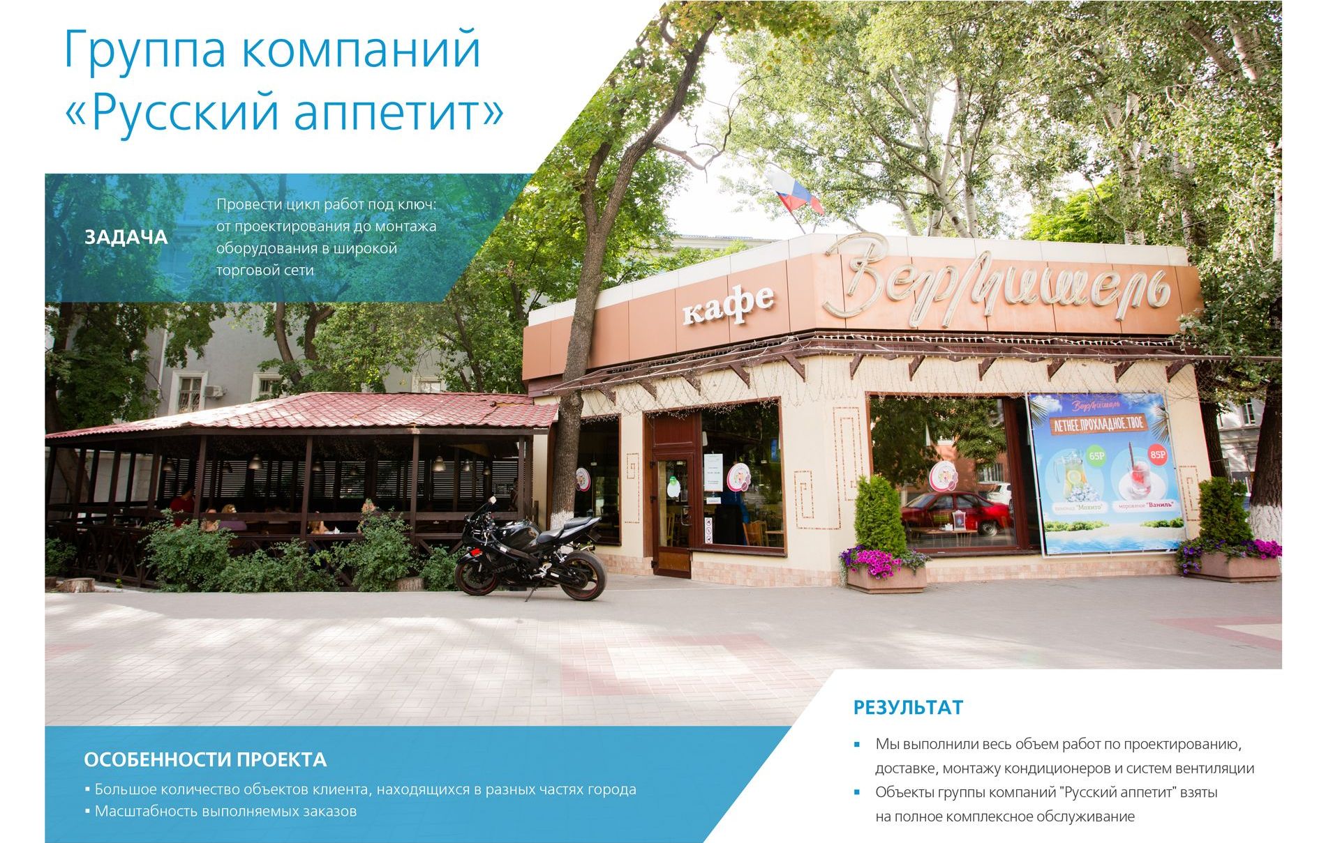 объекты группы компаний «Русский аппетит» взяты на полное комплексное обслуживание.