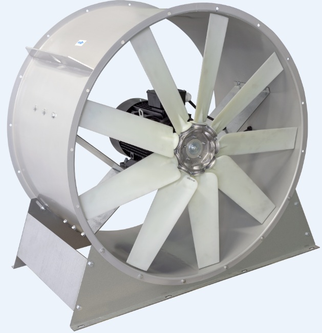Лопасти рабочего колеса, выполненные из высококачественного композитного материала, устанавливаются на ступице из легких алюминиевых сплавов. Профиль лопасти подобран из расчета высокой эффективности, которая обеспечивается аэродинамически обтекаемой формой. Специалистами предприятия разработана конструкция, обеспечивающая минимальный радиальный зазор между рабочим колесом и корпусом, что благоприятно сказывается на характеристиках вентилятора. Благодаря такому сочетанию решений и материалов обеспечиваются низкая масса колеса, низкие значения вибрации, пониженная шумовая характеристика, пониженные значения установочной мощности электродвигателей.
