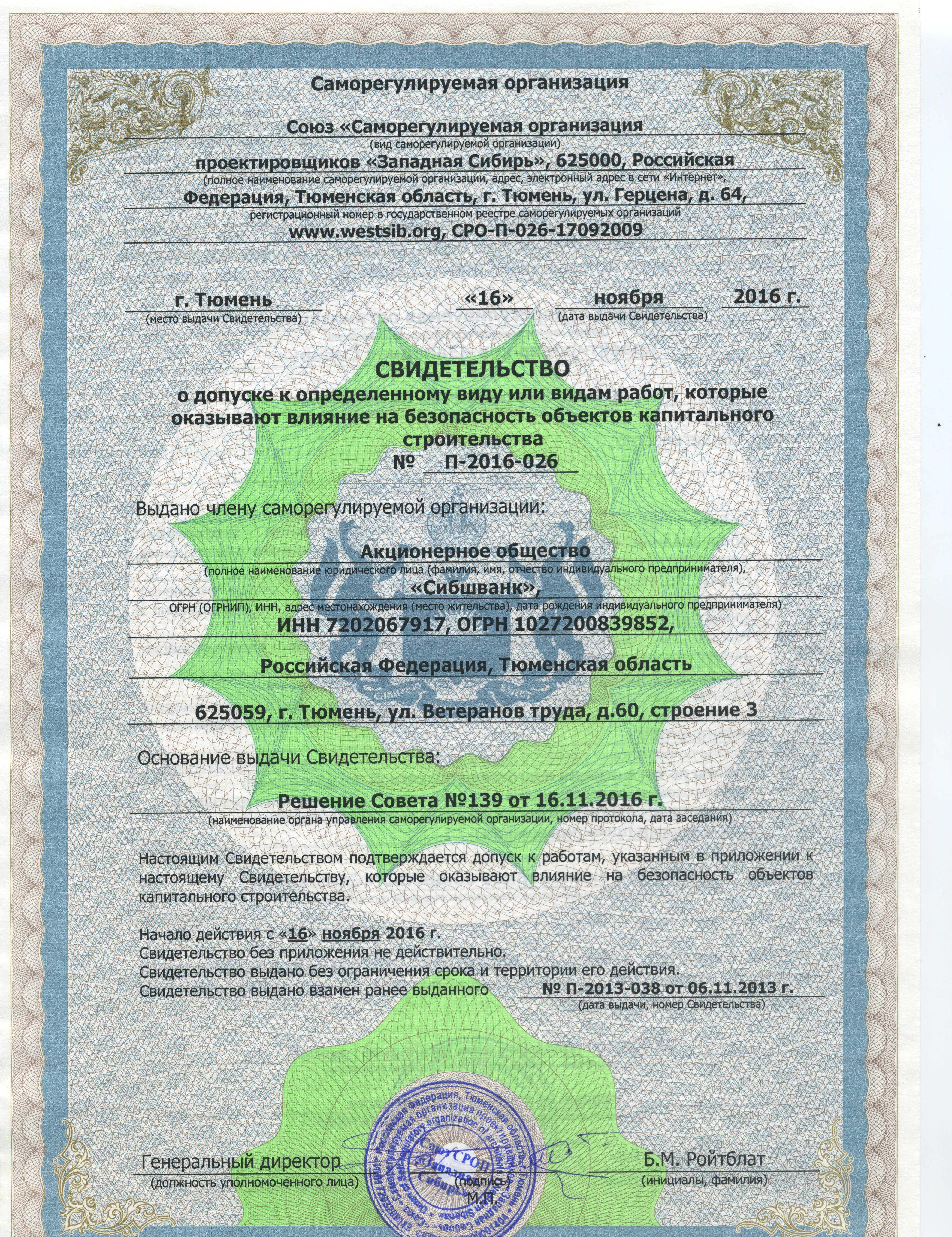 - Свидетельство о допуске к определенному виду или видам работ, которые оказывают влияние на безопасность объектов капительного строительства, стр. 1