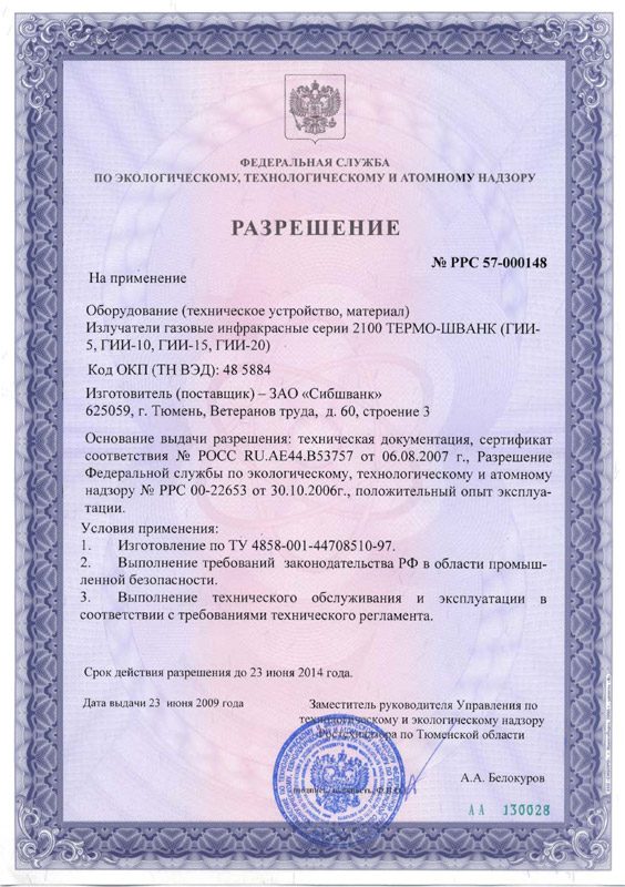 - Разрешение гостехнадзора на применение излучателей газовых ГИИ-5, ГИИ-10, ГИИ-15, ГИИ-20