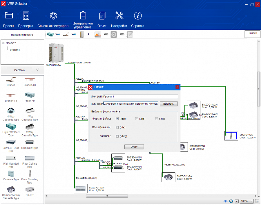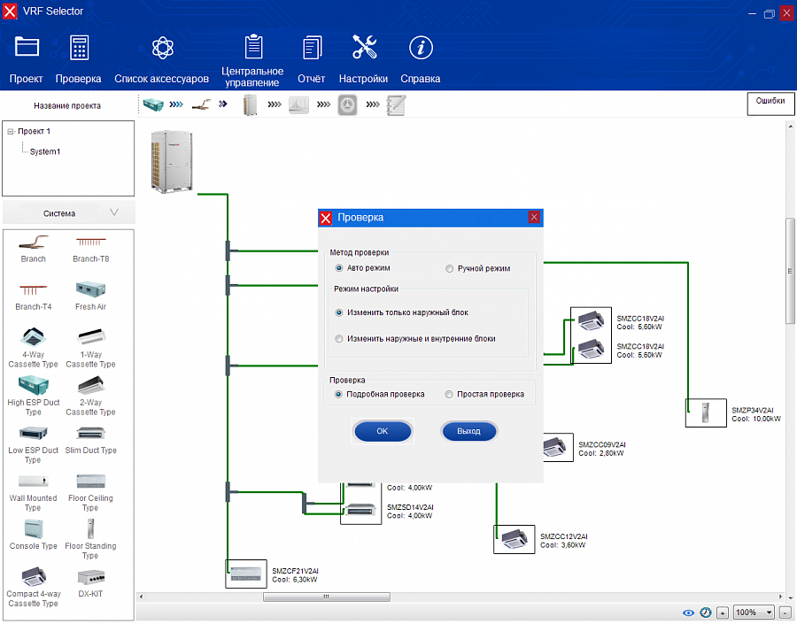 Для удобства проектирования мультизональных системы Energolux SMZ II разработано специальное программное обеспечение SMZ VRF Selector, максимально облегчающее работу проектировщика при проектировании объектов любой сложности.