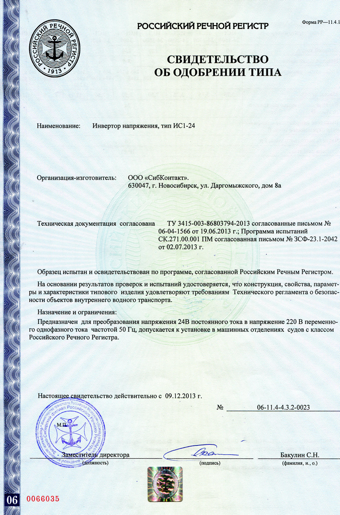 Сертификат об одобрении типового изделия (продукция СибКонтакт), страница 1