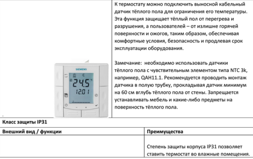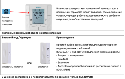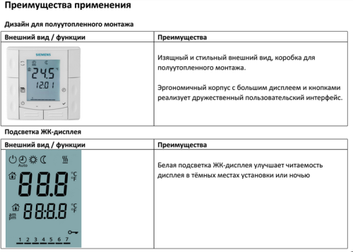 3 года назад «Сименс» запустил производство термостатов RDD310/RDE410 полуутопленного монтажа для систем отопления – в основном, для настенных котлов. Успех этих моделей на рынке сформировал запрос на расширение модельного ряда. Поэтому в настоящее время было запущено дополнительных моделей RDD310/EH и RDE410/EH, рассчитанных на системы электрических тёплых полов (с нагрузкой до 16 A).