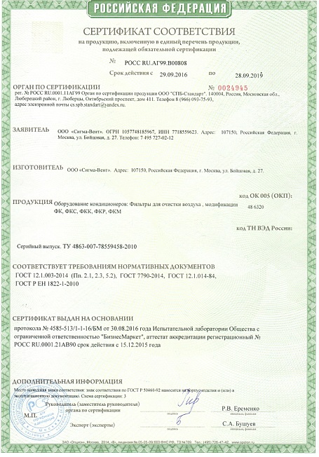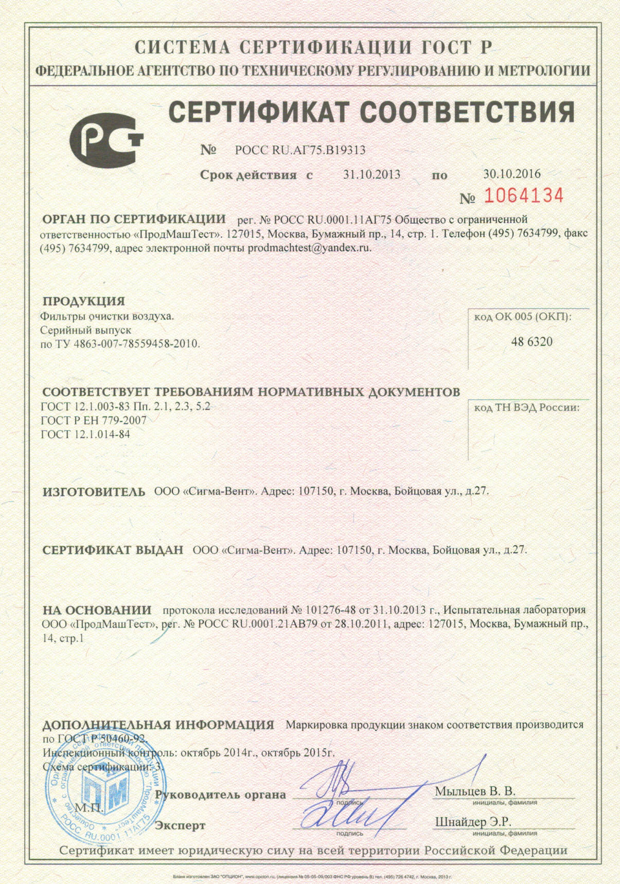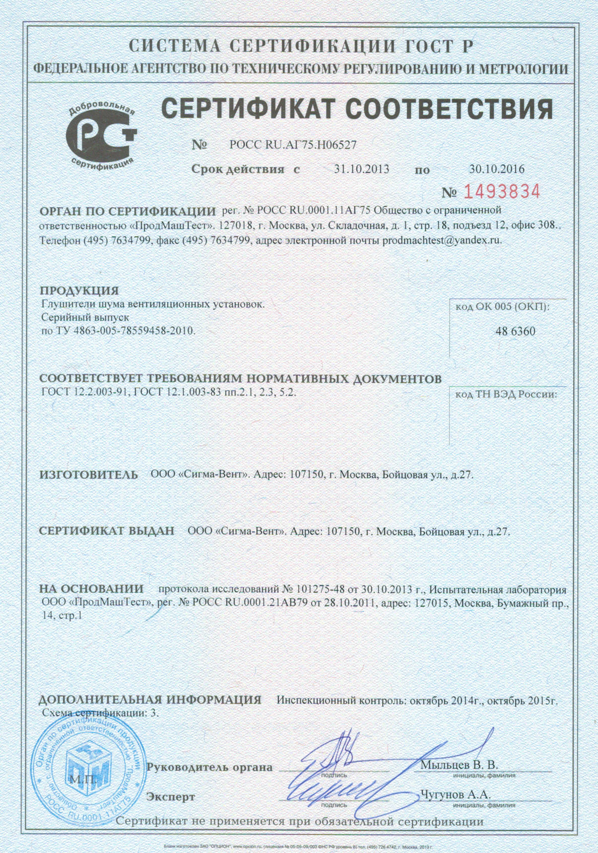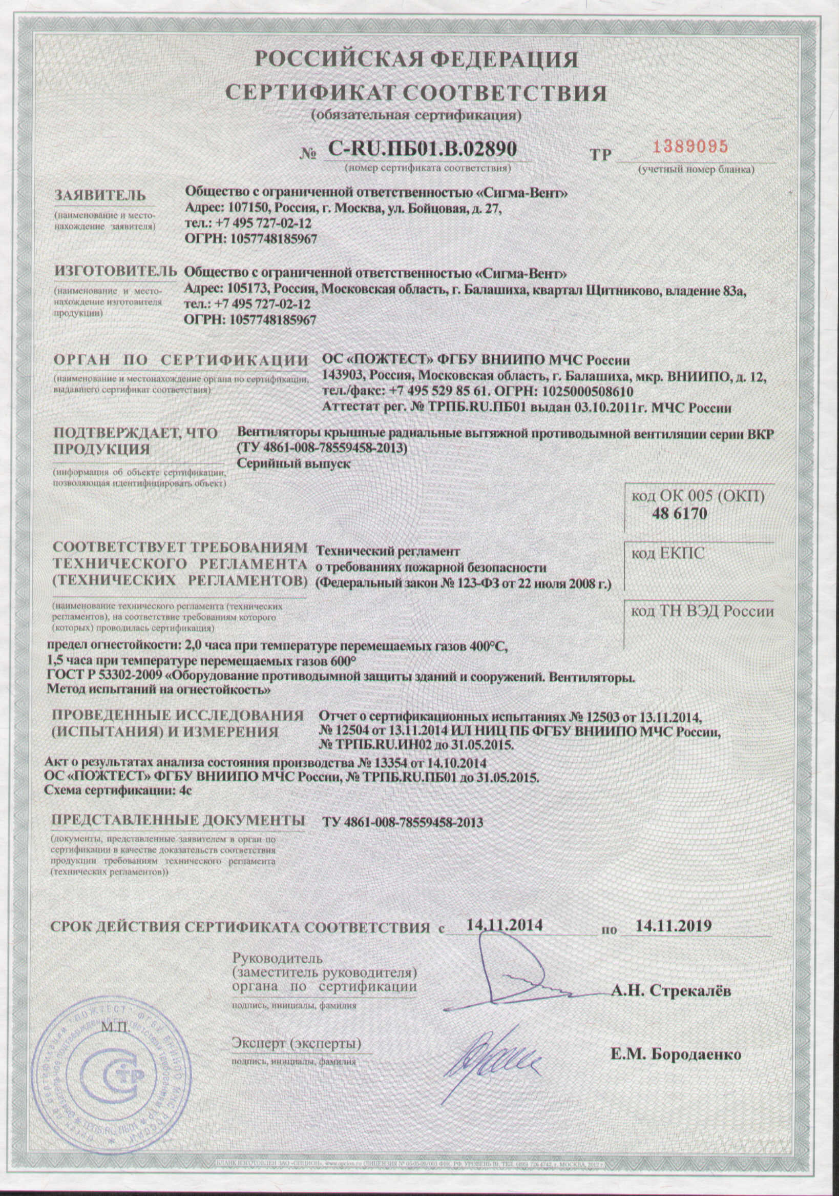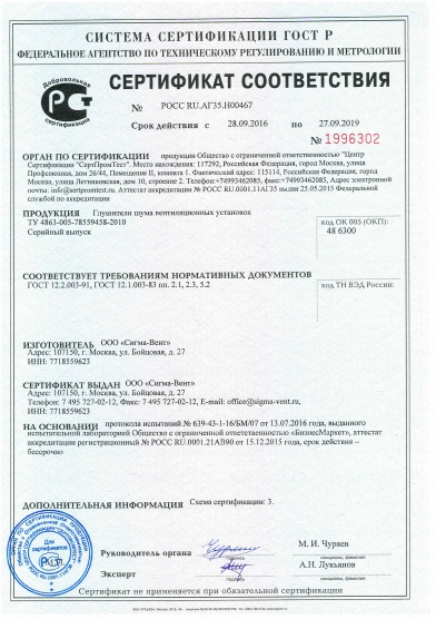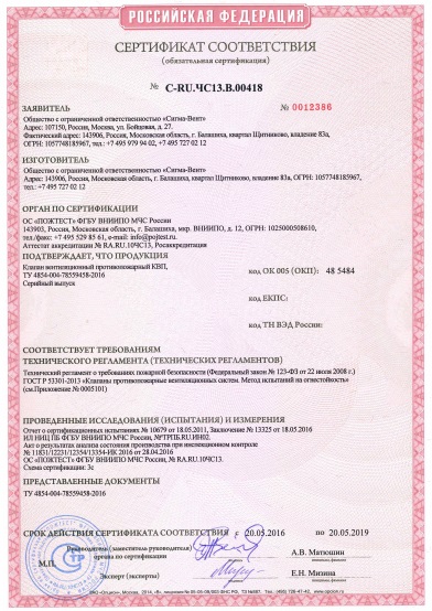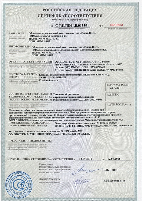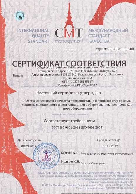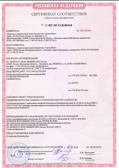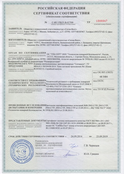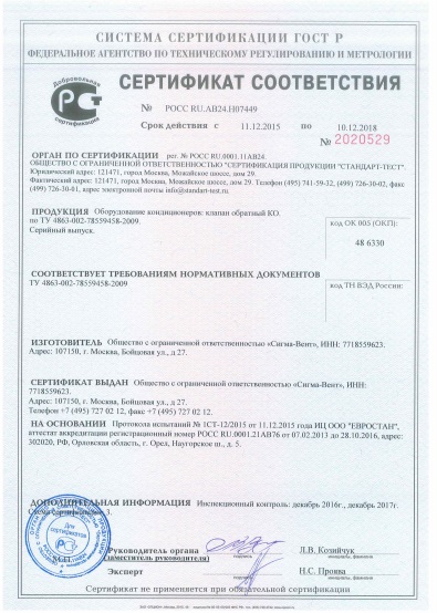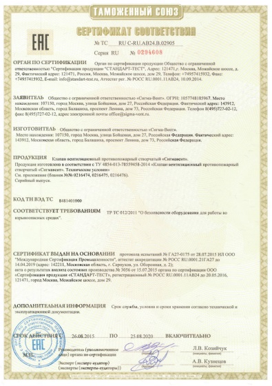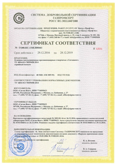Сертификат на клапаны Сигмавент в системе ГазПромСерт