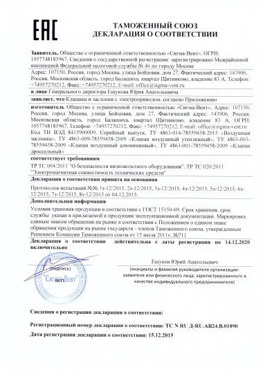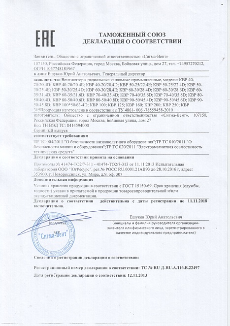 Декларация клапан КВ, КВал, КВал-ОК, КВУ, КВУ-С, КДР