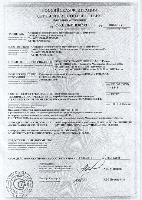 Сертификат на клапаны КВП(60-НО, 120-НЗ, 120-Д(С)