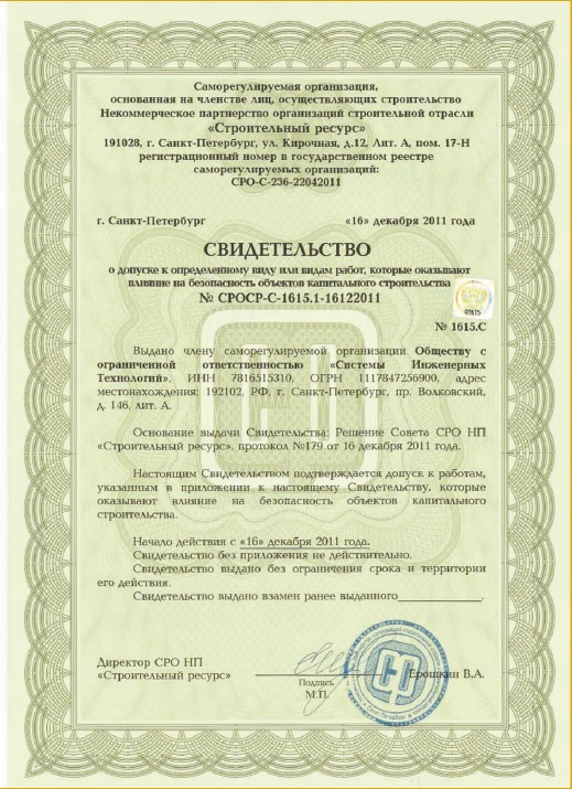 Лицензии и сертификаты компании Системы Инженерных Технологий