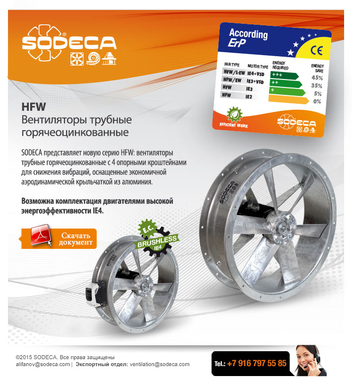 Новинка: Вентиляторы трубные горячеоцинкованные HFWSODECA представляет новую серию HFW: вентиляторы трубные горячеоцинкованные с четырьмя опорными кронштейнами для снижения вибраций, оснащенные экономичной аэродинамической крыльчаткой из алюминия.
