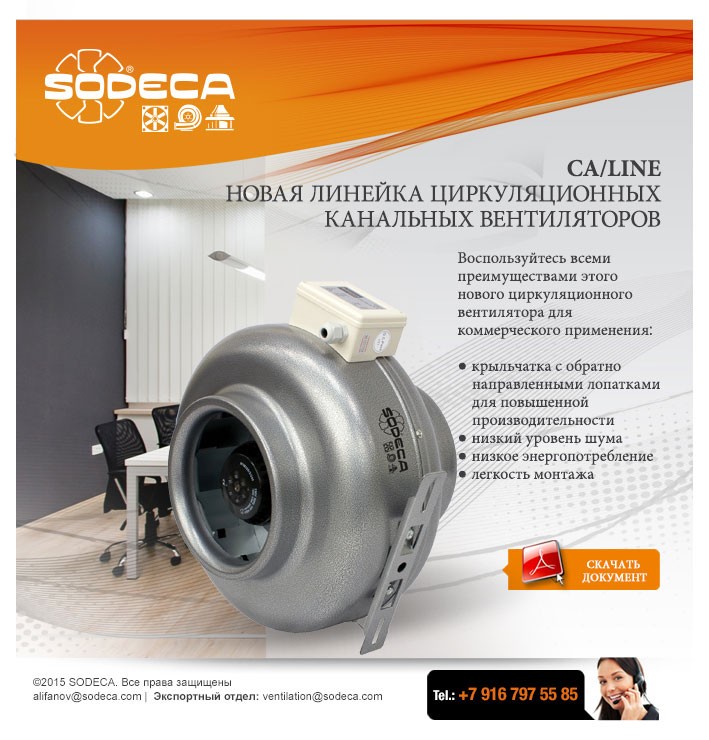 Новинка: Канальные вытяжные вентиляторы SodecaРазработаны с целью экономии энергии.