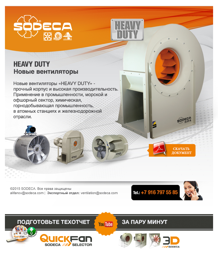 Новые вентиляторы HEAVY DUTYНовые вентиляторы «HEAVY DUTY» - прочный корпус и высокая производительность. Применение в промышленности, морской и офшорный сектор, химическая, горнодобывающая промышленность, в атомных станциях и железнодорожной отрасли.