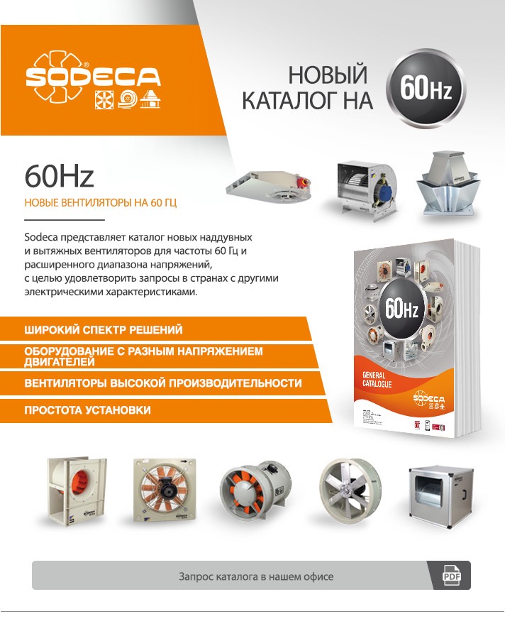 Новые вентиляторы на 60 ГцSodeca представляет каталог новых наддувных и вытяжных вентиляторов для частоты 60 Гц.