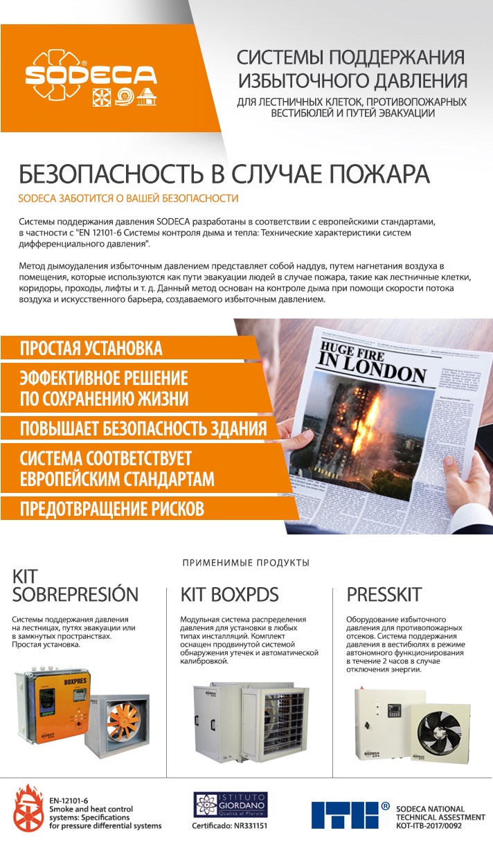 Новинка от Sodeca обеспечит вам безопасность на случай пожараСистемы поддержания избыточного давления для лестничных клеток, противопожарных вестибюлей и путей эвакуации.