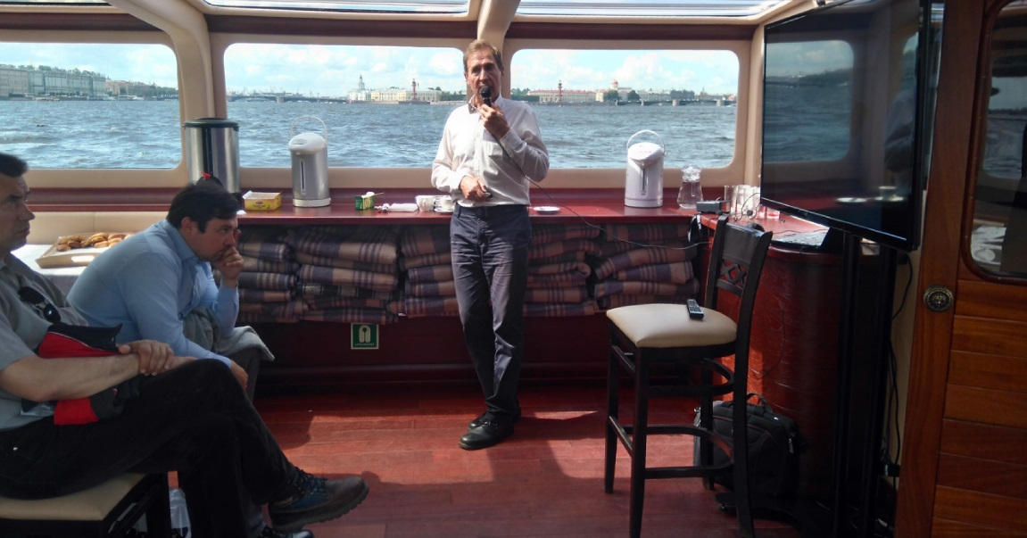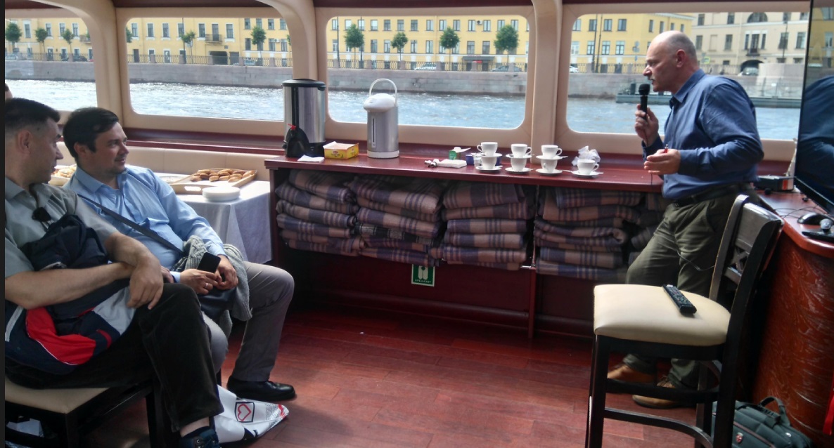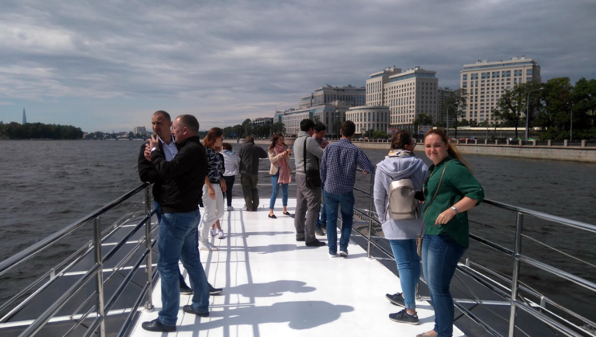 Встреча проходила на теплоходе «Константин», после чего состоялась увлекательная экскурсия по рекам и каналам «Северной Венеции».