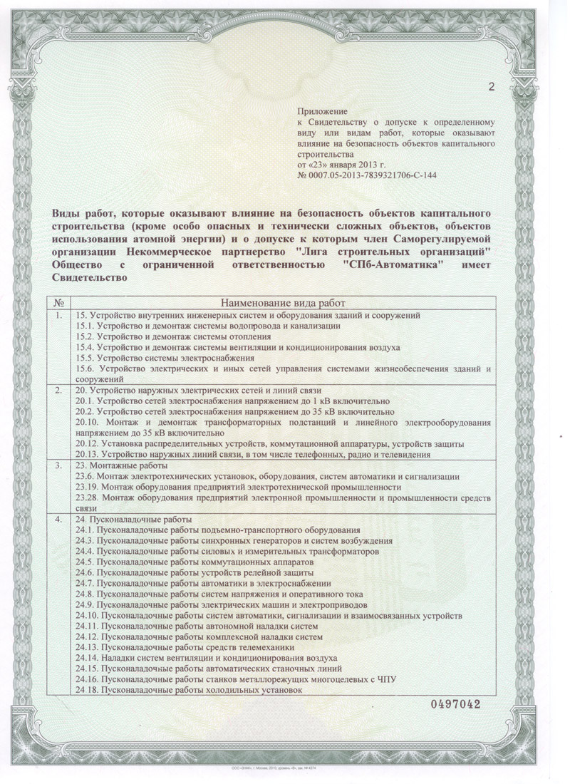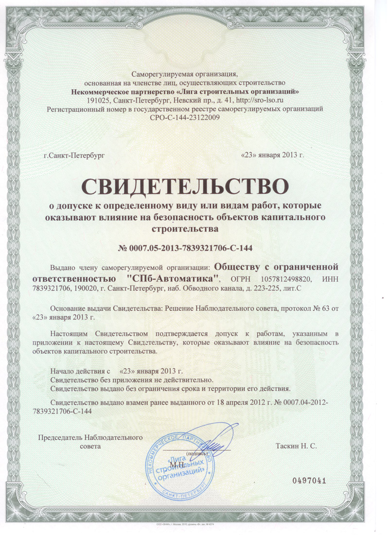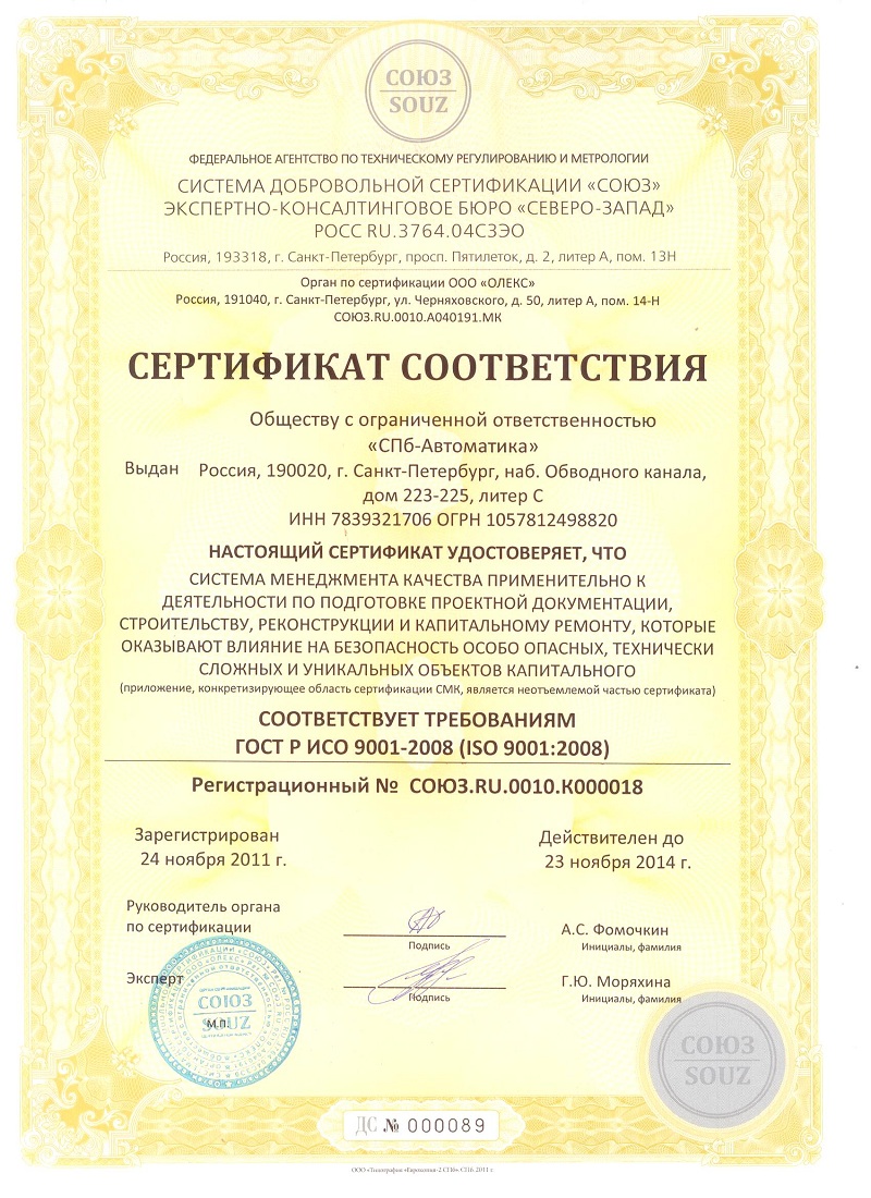 Лицензии и сертификаты компании СПб-Автоматика, ООО