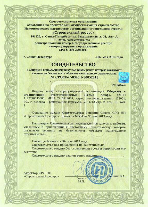 - Сертификат соответсвия № СОЮЗ.RU.0010.К000018