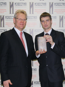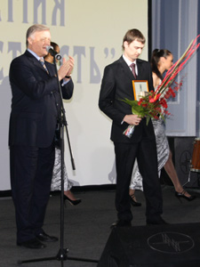 Президент ОАО «РЖД» Владимир Якунин вручает премию Олегу Смирнову |