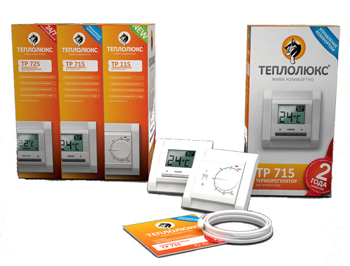 Упаковка терморегуляторов «Теплолюкс» ТР 115, ТР 715, ТР 725.